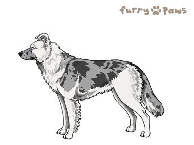 | Color: | Roaned Silver Merle and White (Irish) with Blue Saddle and Mask |