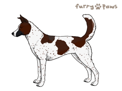 | Color: | Red and White (Piebald) with Steel Blue Grizzle, Mask, Ticking, and Light Undersides |