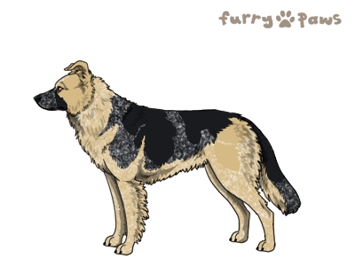 | Color: | Roaned Cream and White (Piebald) with Black Saddle and Mask |