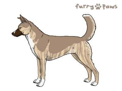 | Color: | Brindle Cream and White (Irish) with Faded Brown Saddle, Mask, and Light Undersides |