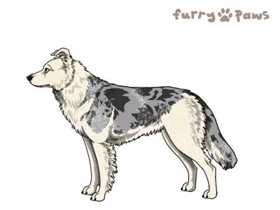 | Color: | Roaned Silver Merle and White (Piebald) with Blue Saddle |