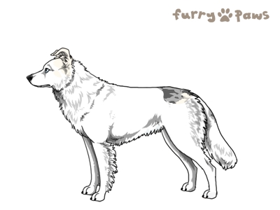 | Color: | Silver Merle and White (Extreme Piebald) with Blue Saddle and Mask |