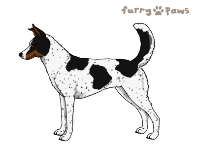 | Color: | Black and White (Piebald) with Red Points, Ticking, and Light Undersides |
