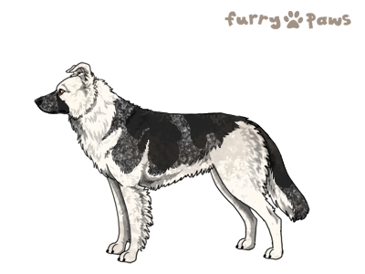 | Color: | Roaned Silver and White (Piebald) with Black Saddle and Mask |