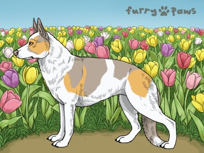 | Color: | Fawn and White (Piebald) with Isabella Saddle and Mask |