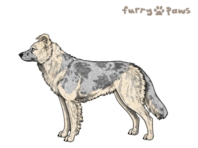| Color: | Roaned Brindle Cream Merle and White (Extreme Piebald) with Blue Saddle and Mask |
