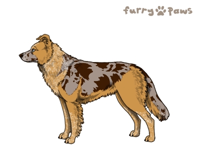 | Color: | Roaned Fawn Merle and White (Irish) with Chocolate Saddle and Mask |