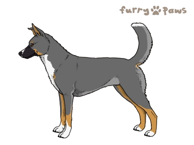 | Color: | Steel Blue and White (Irish) with Tan Points, Mask, and Light Undersides |
