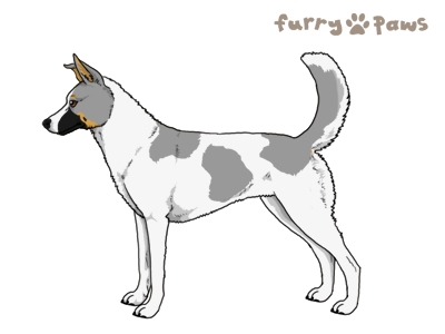 | Color: | Steel Blue and White (Piebald) with Tan Points, Mask, and Light Undersides |