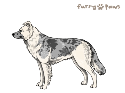 | Color: | Roaned Silver Merle and White (Piebald) with Blue Saddle and Mask |