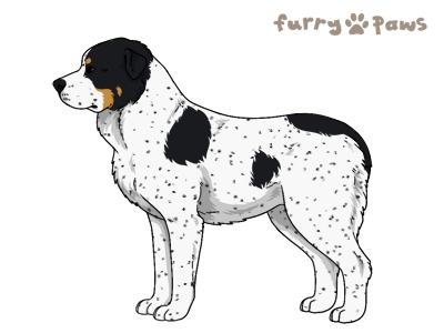 | Color: | Black and White (Piebald) with Tan Points and Ticking |