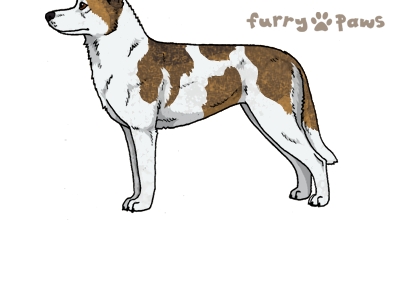| Color: | Fawn and White (Piebald) with Black Grizzle and Light Undersides |