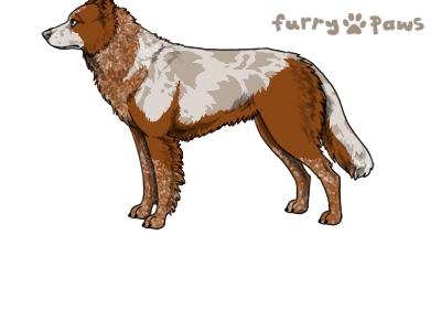 | Color: | Roaned Red Merle and White (Irish) with Isabella Saddle and Mask |