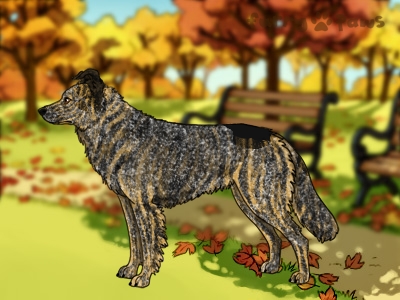 Brindle Fawn and White (Piebald) with Black Sable, Mask, and Ticking