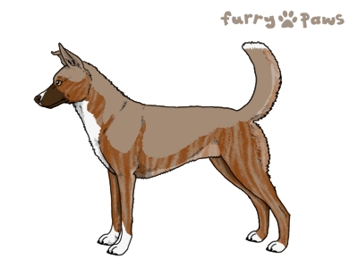 | Color: | Brindle Red and White (Irish) with Faded Brown Saddle, Mask, and Light Undersides |