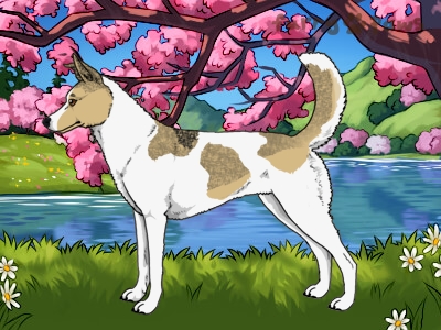 | Color: | Cream and White (Piebald) with Black Grizzle and Light Undersides |