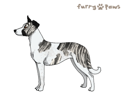| Color: | Brindle Silver and White (Piebald) with Black Sable, Mask, and Ticking |