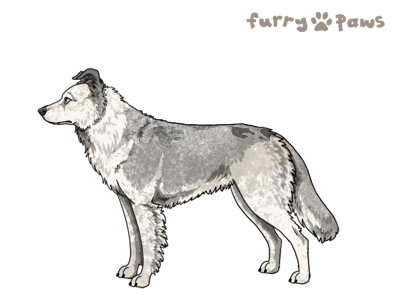 | Color: | Roaned Silver Merle and White (Extreme Piebald) with Blue Sable |