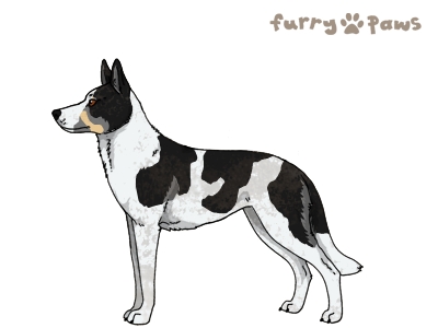 | Color: | Black and White (Piebald) with Tan Points, Mask, and Light Undersides |