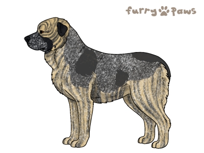 | Color: | Roaned Brindle Cream and White (Piebald) with Steel Blue Saddle and Mask |