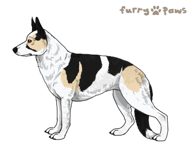 | Color: | Cream and White (Piebald) with Black Saddle and Mask |