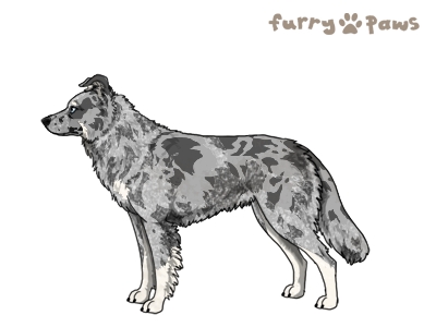 | Color: | Roaned Blue Merle and White (Piebald) with Silver Points and Mask |