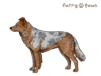 Color:Roaned Brindle Red Merle and White (Extreme Piebald) with Blue Saddle