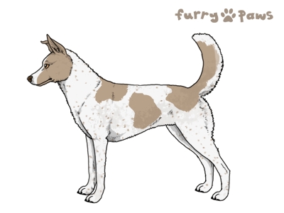 | Color: | Faded Brown and White (Piebald) with Ticking and Light Undersides |
