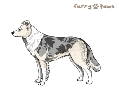Silver Merle and White (Irish) with Blue Saddle PP kk Ee Bb Dd slsl asaasa sisw Mm rr tt cwcw lala is not trained in any sports.